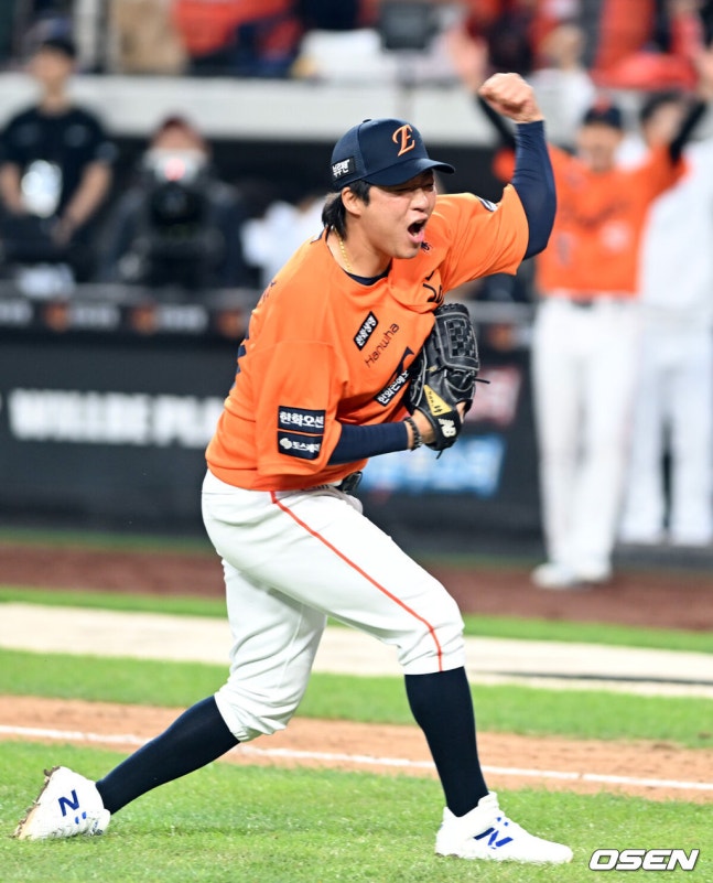 프로야구 한화 이글스 투수 김범수가 1점 차 승리를 지켜내며 포스트시즌 개인 첫 세이브를 기록했다.