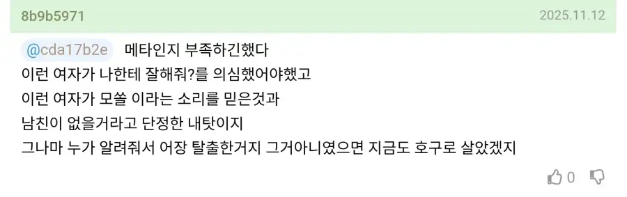 이거 남자가 지가 좋아서 잘해줘놓고왜 여자 욕하냐고 하는 사람들 꽤 많았는데